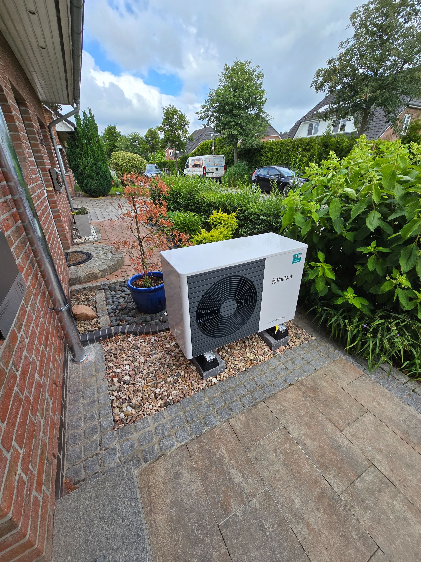 In einem Doppelhaus in Bremen Horn-Lehe wurde die bestehende Gasheizung samt Warmwasserspeicher, die zuvor im Dachgeschoss untergebracht war, vollständig demontiert. Anschließend erfolgte der Einbau einer modernen, effizienten Luft-Wasser-Wärmepumpe von Vaillant. Das Gebäude wird sowohl über Heizkörper als auch über eine Fußbodenheizung beheizt, sodass die neue Anlage optimal integriert werden konnte und für eine gleichmäßige, energieeffiziente Wärmeverteilung sorgt.